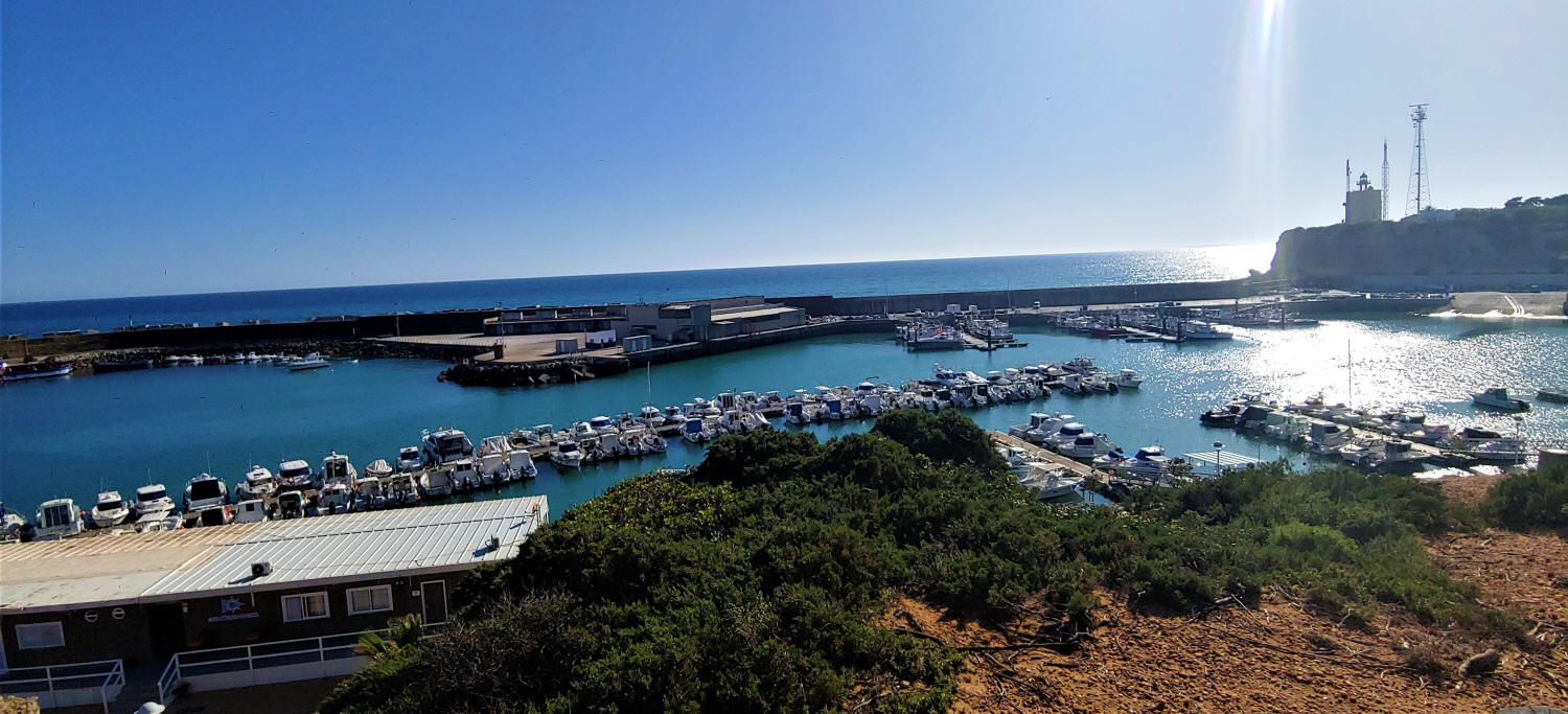 Puerto de Conil de la Frontera, a la derecha el Faro del Cabo de Roche