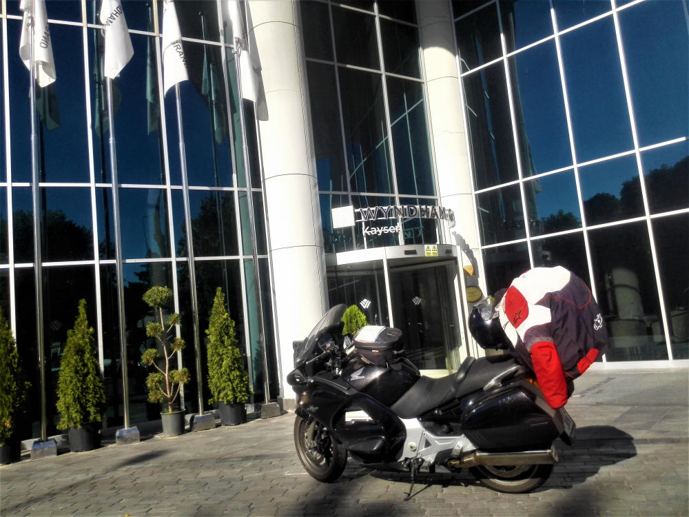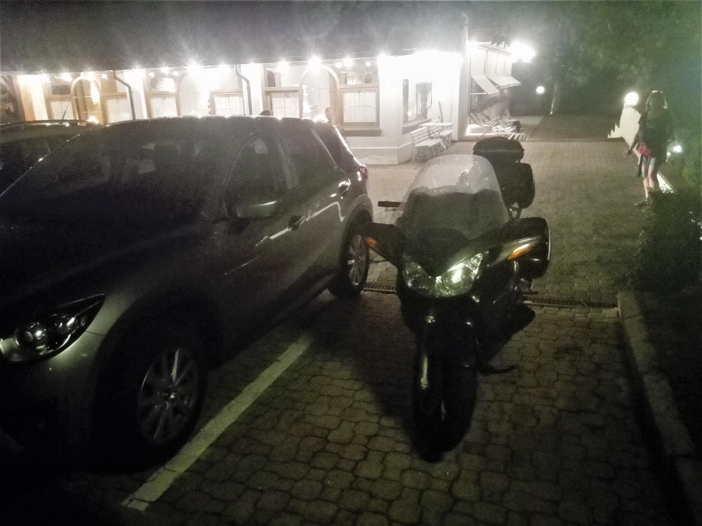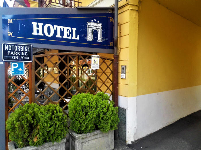 Si el Hotel Ranzi de la noche anterior fue posiblemente el mejor del viaje, el escogido en esta ocasión fue de los peores, si el Ranzi es totalmente recomendable, este es todo lo contrario "a huir"..., un tres estrellas, que nunca debió pasar de dos, viejo, sin ascensor y con un parking para la moto que decidí que mejor pasara la noche a la intemperie..., aún sigo preguntándome ¿por que hacían referencia a ser bienvenidos los moteros?