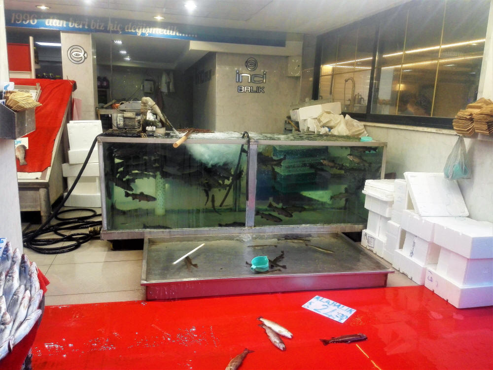 Después de cenar unas doradas a la brasa y unos calamaretti a un precio sensacional..., volvimos a nuestro paseo y a la búsqueda del buenísimo Çay (te turco).