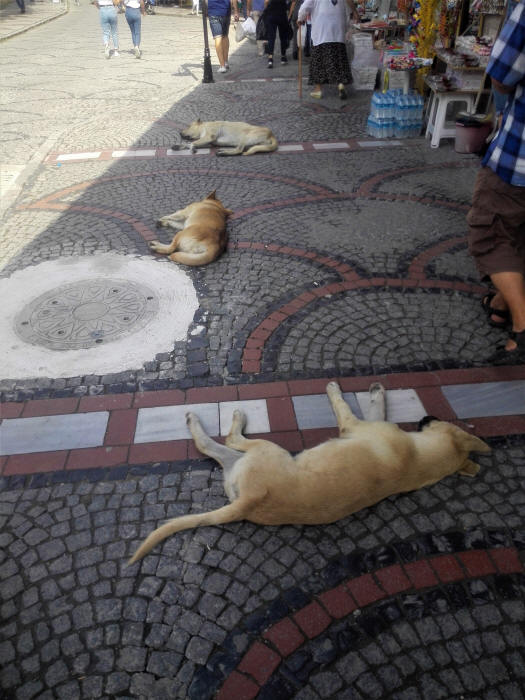 Impresionante la cantidad de perros callejeros que se pueden ver por pueblos y ciudades, no hacen nada la verdad, por no hacer ni ladran..., se tumban en las sombras y esperan que alguien les de de comer..., son en su gran mayoría perros grandes como los de la foto...