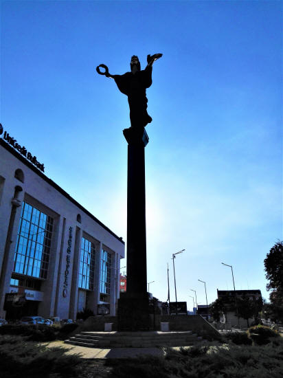 La Plaza Nezavisimost, posiblemente el lugar más "céntrico" de la ciudad, con la imagen de Sofía a la izquierda en una columna...