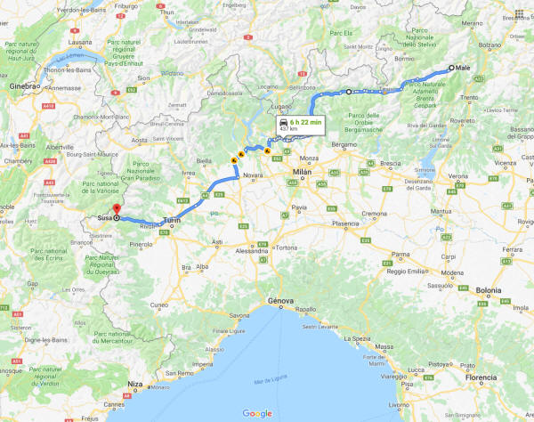 Solo disminuyó una vez pasado y alejados de las influencias de Turin, pero para entonces ya estábamos hasta el gorro de calor y tráfico y moto, así que decidimos hacer noche en la última ciudad italiana por este lado, Susa...