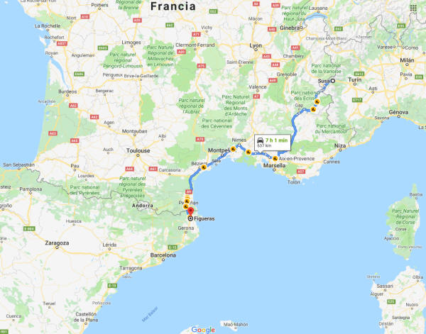 El objetivo para el día era Figueres, el día de antes estuvimos buscando posibilidades por la Costa Brava pero imposible, todo ocupado y lo que quedaba libre a unos precios prohibitivos...