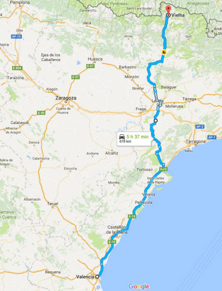 ¿Por que Vielha? Se encuentra más o menos a mitad de camino, tampoco sé como estarán las carreteras ni las dificultades que encontraré y supone una distancia prudencial desde Valencia, además sigue siendo España, comida española a precios no tan españoles, pero bueno..., y otra razón más, no la he visitado nunca.