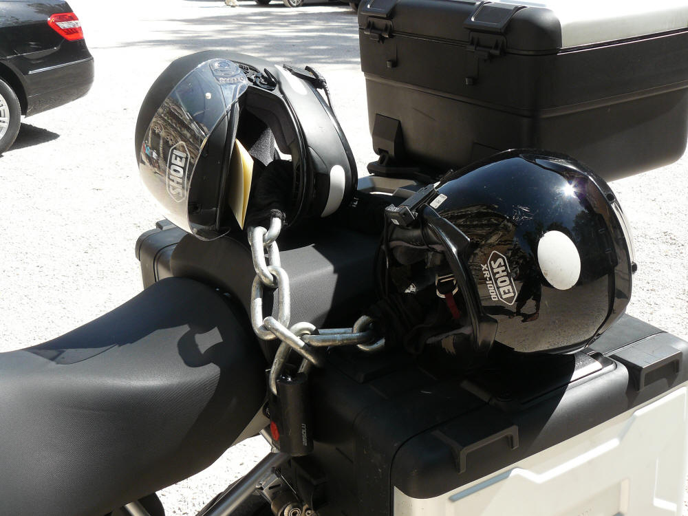 Moto en el parking del Hotel..., cascos seguros...¡¡¡