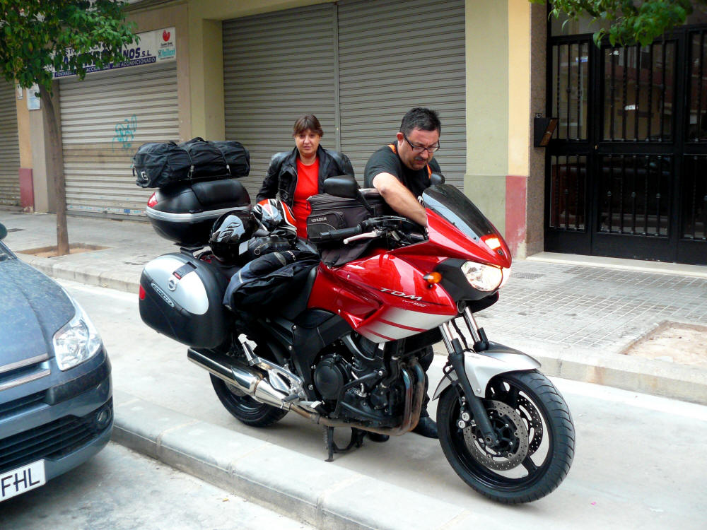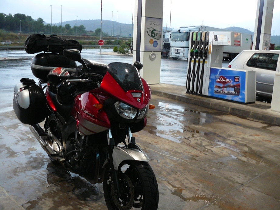 Buen comienzo, una tormenta en Sagunto nos obliga a buscar refugio en una gasolinera, y nos calamos, como no podía ser de otra forma.