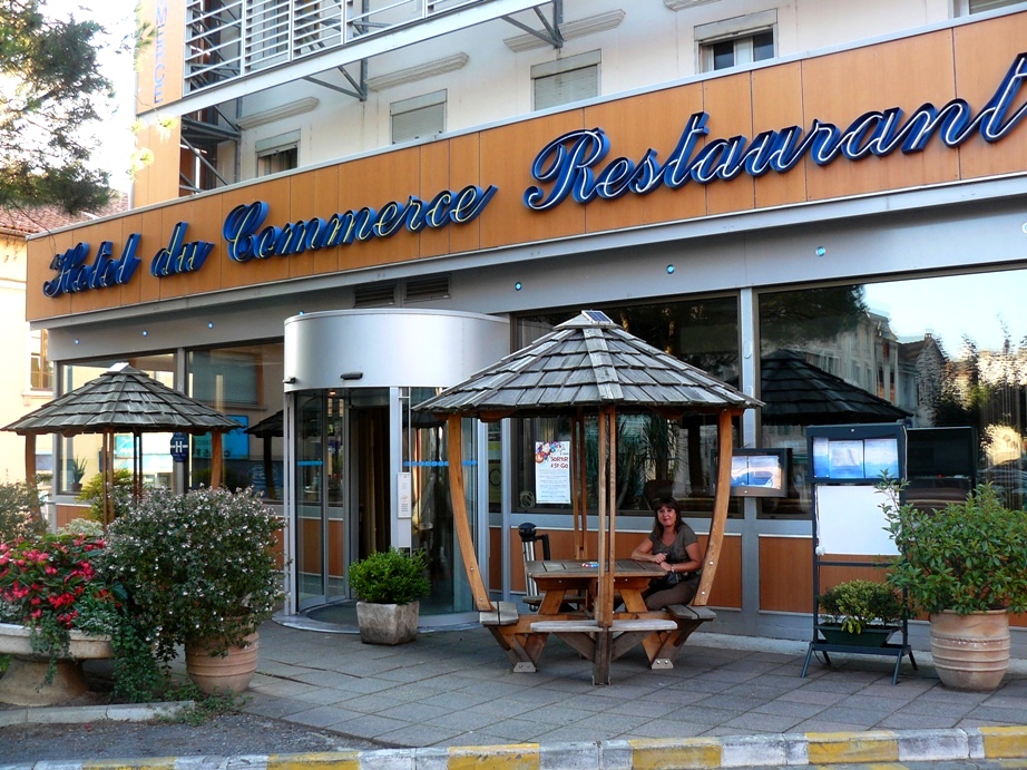 Llegada al Hotel du Comerce de Saint Gaudens (Francia). La estancia estuvo entretenida, había una boda en el pueblo y casi todos los invitados estaban alojados en él.