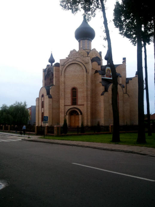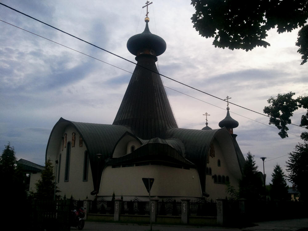 Menos mal que Marisa va haciendo fotos por el camino. Parados en un semáforo..., otra iglesia ortodoxa en un pueblo perdido de Polonia.