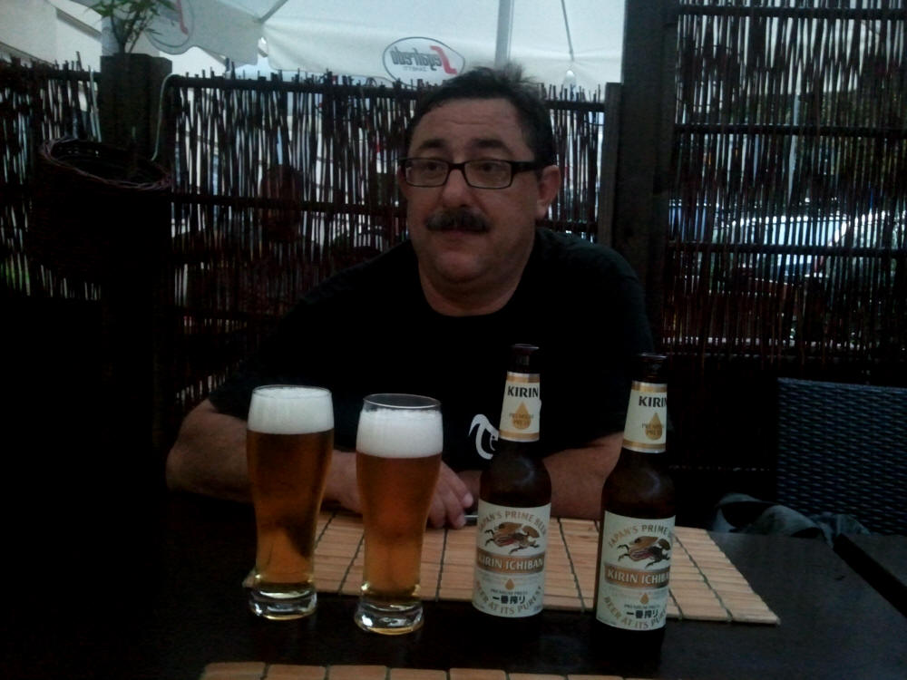 La tormenta arrecia, corriendo nos refugiamos en la terraza de un Rte. sin darnos cuenta de que era japonés...¡¡¡