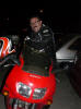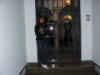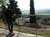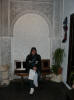 Hete aquí a Marisa con su cazadora, de la que no se despegaría en todo el viaje (también hacía frío esa noche) posando entre dioses y vírgenes. |
