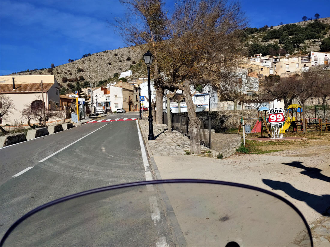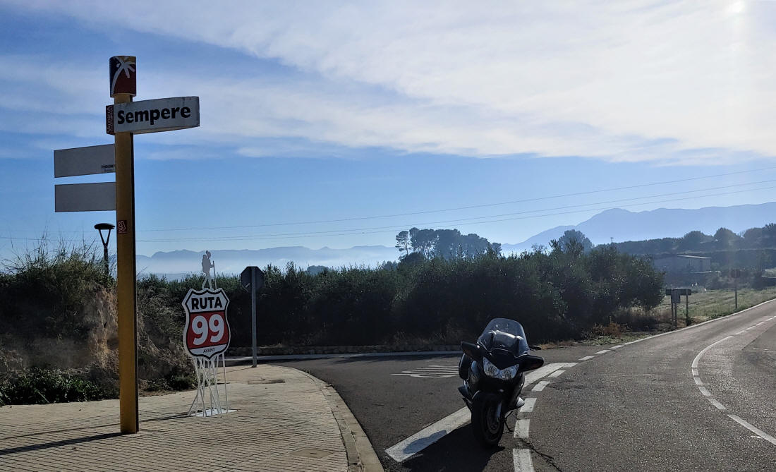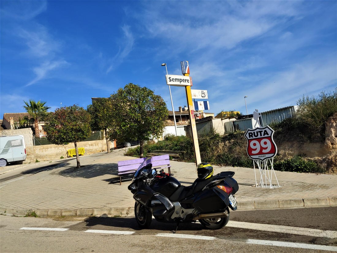 Parece ser que..., a causa de una ordenanza municipal están prohibidas determinadas señales e indicaciones en la población, de ahí que no exista la típica señal de Ruta 99