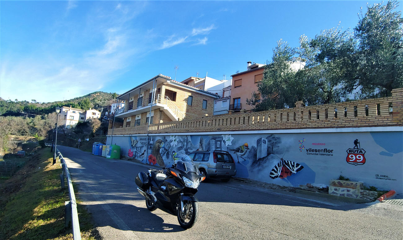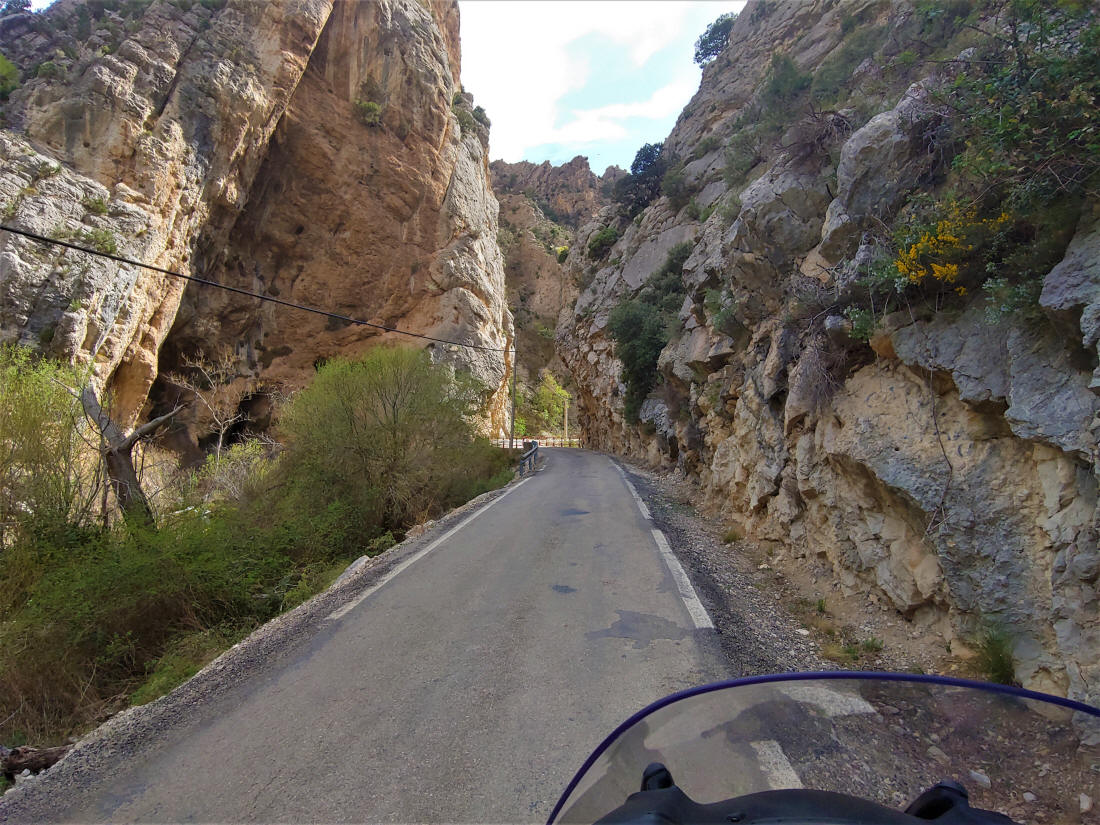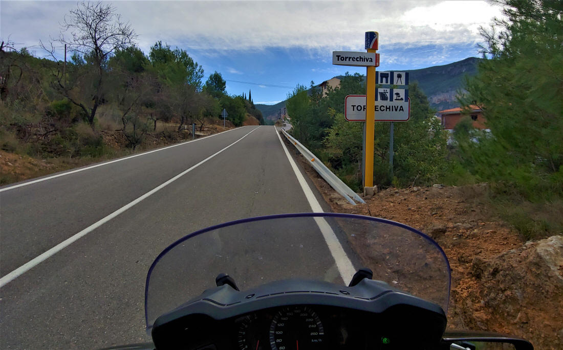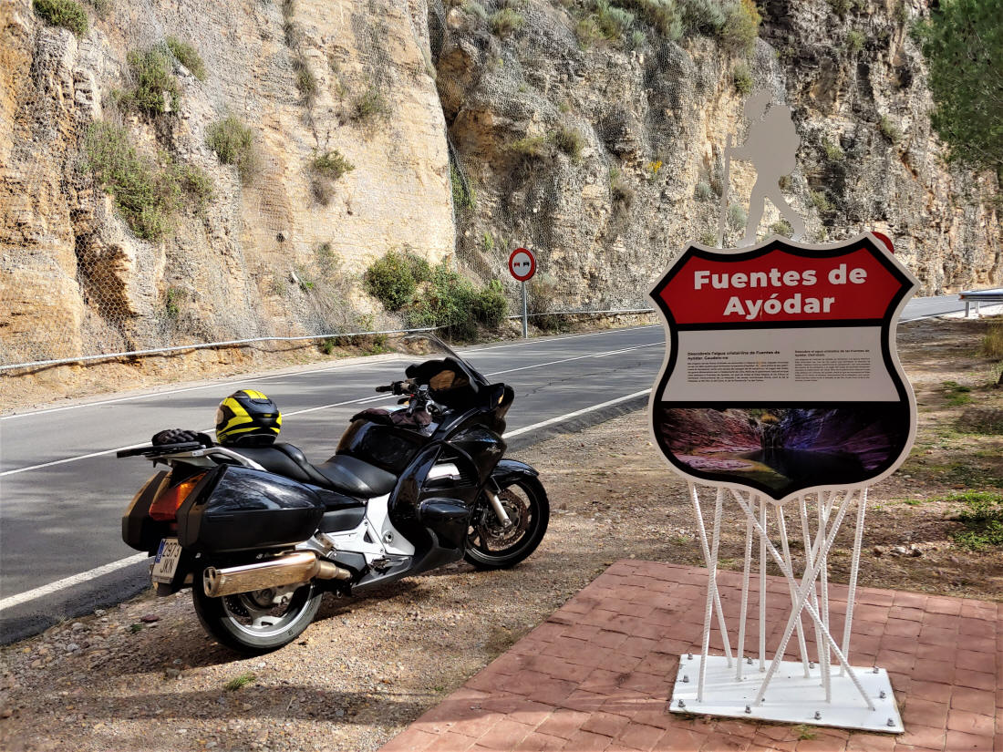 Hago un alto aquí para comentar algo que considero obligatorio..., las carreteras CV-203 y CV-205 entre Caudiel, Fuentes de Ayodar y Ayodar, es posiblemente uno de los tramos más bonitos que he podido ver en la Comunidad Valenciana, son 40 km. de puro disfrute para los sentidos, carretera motera perfecta, paisaje increíble y asfalto bueno ¿que más se puede pedir?...