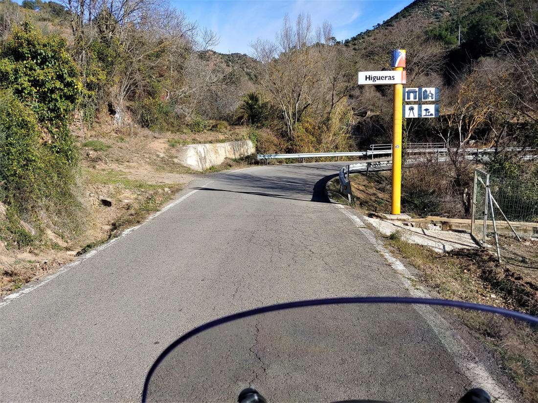 No he calculado los kms. ya que habría que descontar perdidas, errores, atajos y otros desvíos que a veces han sido necesarios..., además parto de la base de que mi residencia es Valencia ciudad, con lo que estoy justo al medio de la ruta, para otra persona que viva en Castellón o Alicante los km. pueden variar considerablemente. Aún así no creo haber hecho muchos menos de 2.000 km. pensemos que solo la salida para los cuatro pueblos del interior de Castellón ida y vuelta simple ya son casi 500 km.