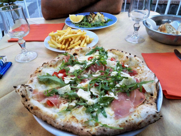 Al ser domingo y a esas horas la ciudad estaba casi desierta (claro todo el mundo o en la playa o en la carretera) pero con un pasear agradable con la caida del sol, muy llana y excepcionalmente ordenada y limpia (hay que recordar que estamos en el sur de Italia).