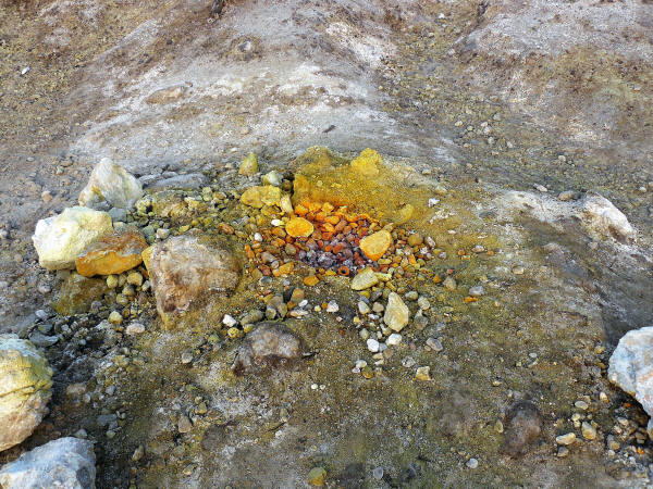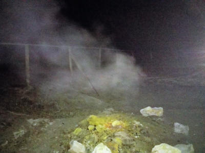 El olor cambia y dependiendo de las zonas, el azufre casi se saborea, y conforme te vas adentrando se van viendo pequeñas columnas de humo blanco...