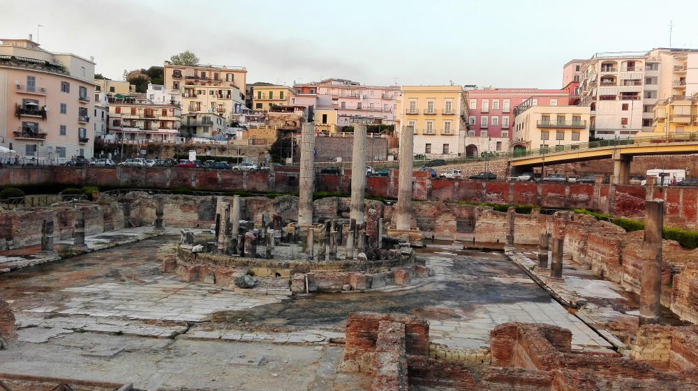 Por la tarde una visita a Pozzuoli, la población que nos había acogido estos días, y como no..., siendo italiana también tenia sus ruinas...., aquí el Templo de Serapis.
