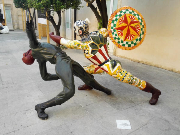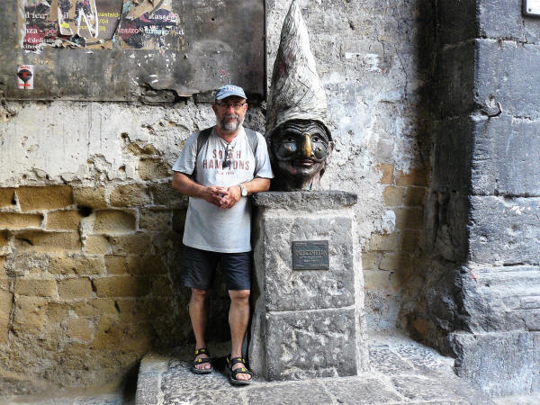 Y por la mañana a visitar las entrañas de Nápoles, primero una vuelta por fuera..., con visita incluida a Polichinela (personaje de la commedia dell'arte)