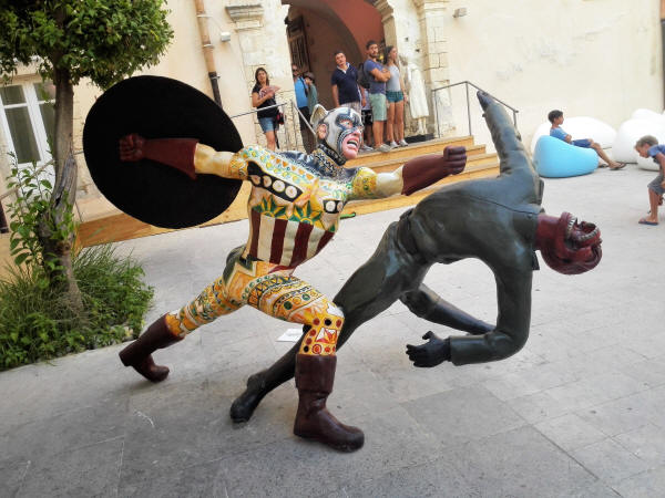 No, no me he equivocado de fotos, casualmente en Noto había una pequeña exposición del artista palermitano Domenico Pellegrino, y para un fan de los comics (tebeos) y marvelita convencido como yo..., no podía perder la oportunidad de retratarlos...
