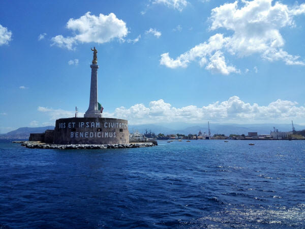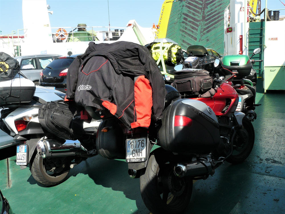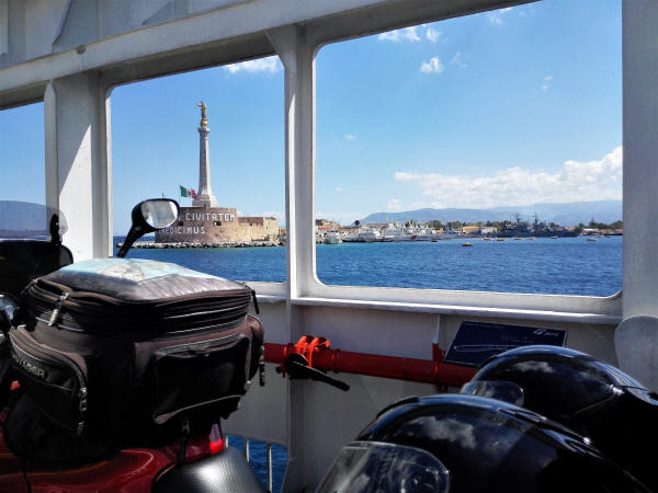 A la mañana siguiente embarcamos la moto y nosotros rumbo a Sicilia, después de haber dejado atrás kilómetros (en serio) de colas de coche para embarcar (las motos nos ponemos los primeros, algún privilegio teníamos que tener) cruzamos el estrecho y llegamos a Mesina.