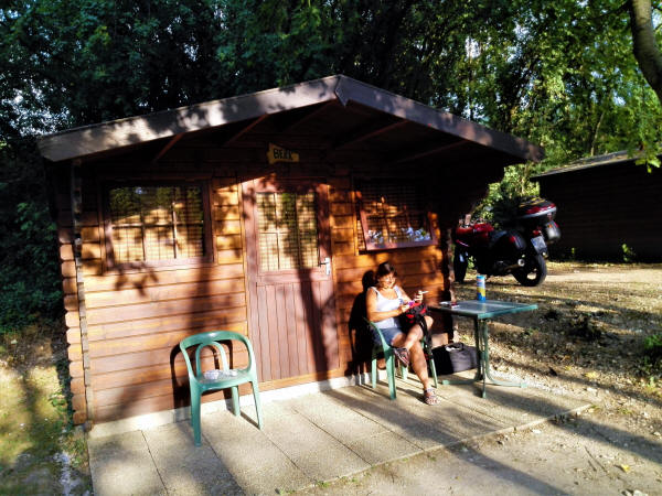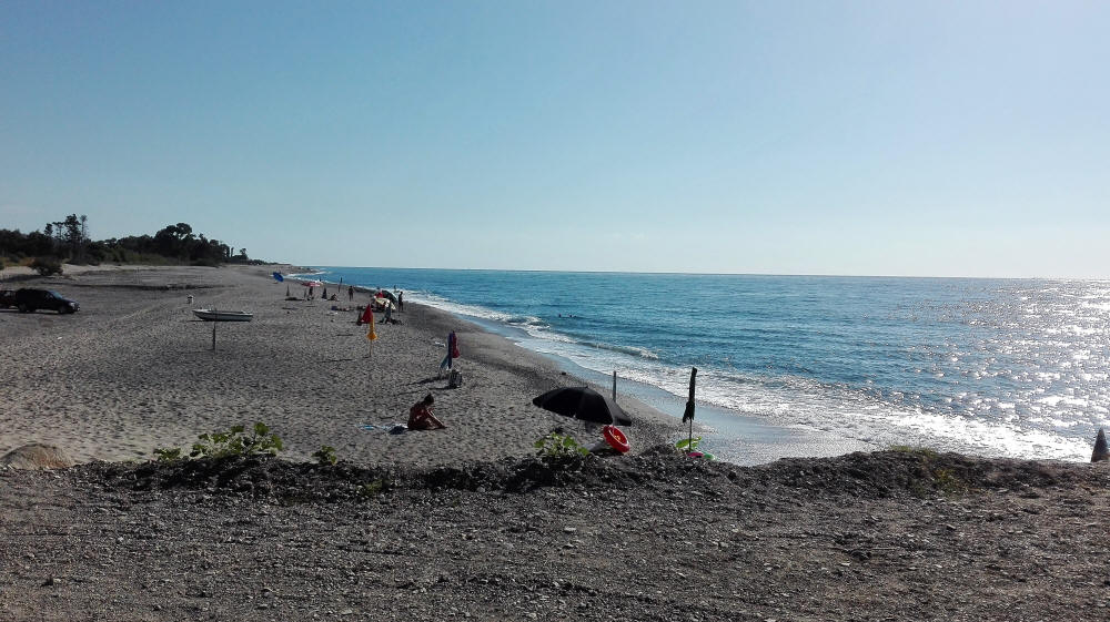 Una parada de transición para pasar la noche, en un camping de transición Capypso justo en la planta del pie italiana, que lo mejor que tenia era la playa pegada y que la chica de recepción era de Madrid, lo que facilita mucho las cosas...
