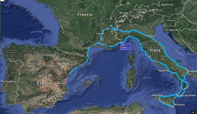 Fue un día duro de moto, de transición..., pero duro, a las 6'00 de la tarde llegábamos al hotel de Regio de Calabria, en la punta de la bota italiana, para pasar al día siguiente a Sicilia, cruzando el Estrecho de Mesina