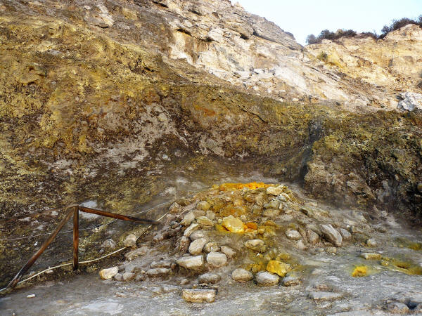 Nada más entrar te da sensación de calor, pero no del sol precisamente, un calor distinto, tocas la tierra del suelo con la mano y en algunos lugares está tibio..., porque en otros está caliente y en algunos pocos no se puede tocar porque literalmente, quema...!!!
