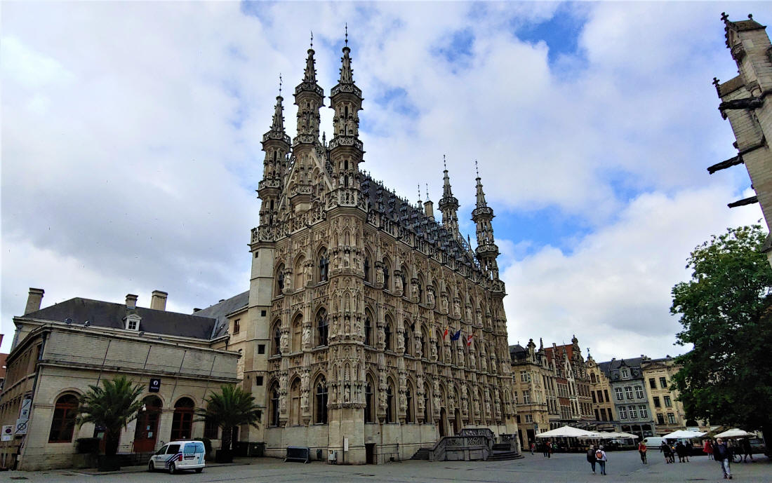 Al fondo en el centro, el Ayuntamiento de Lovaina...