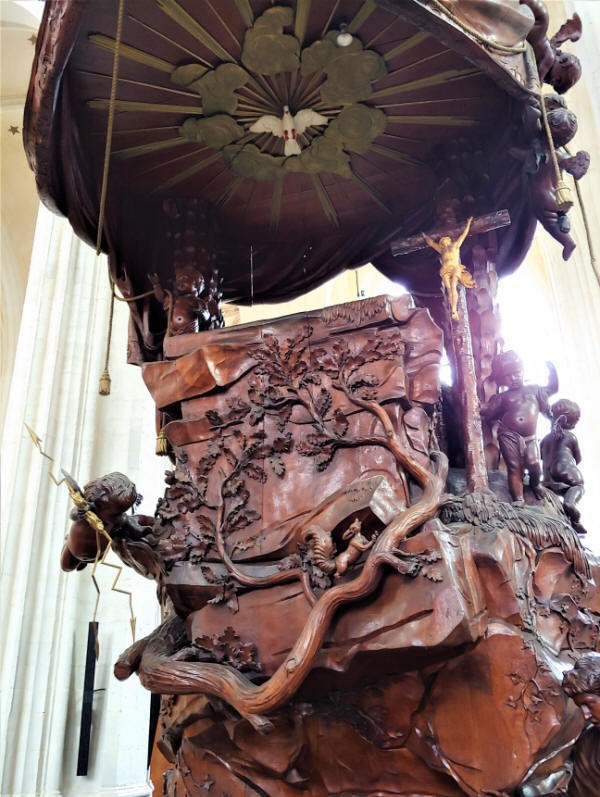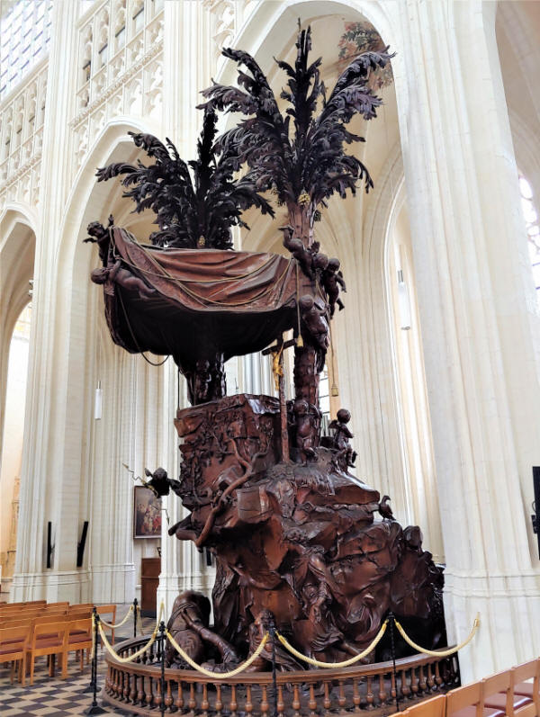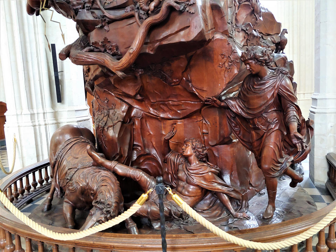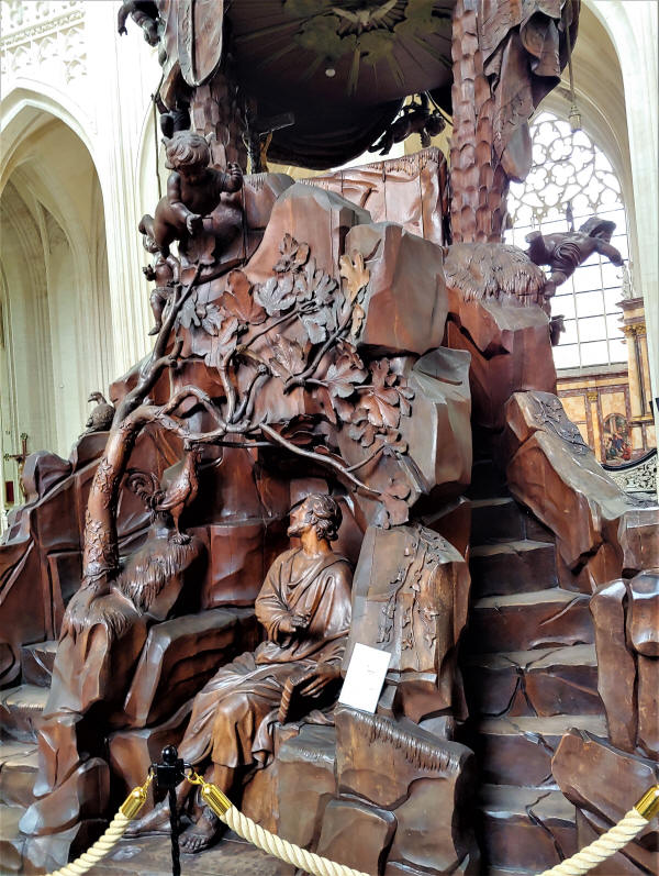 Entramos en la Catedral de Lovaina dedicada a San Pedro, que si bien no nos dijo nada, hay que reconocer que tiene un Púlpito en madera tallada impresionante...