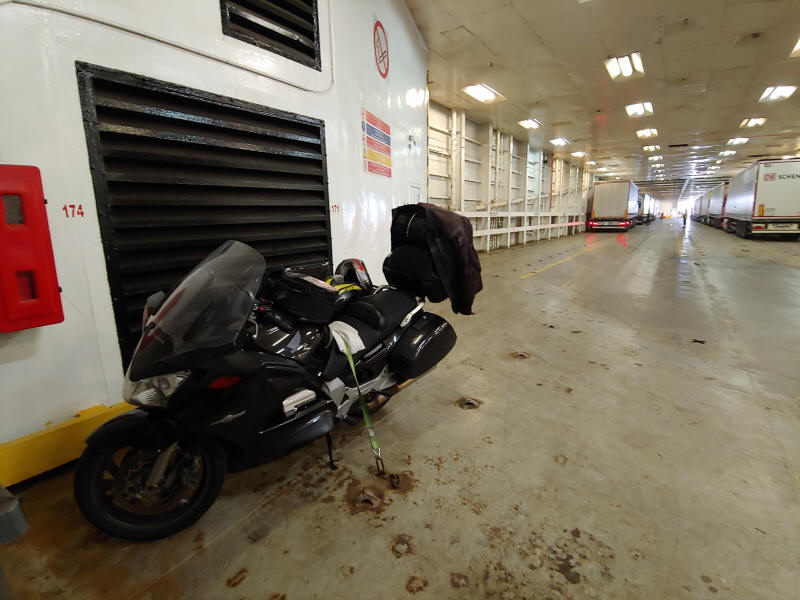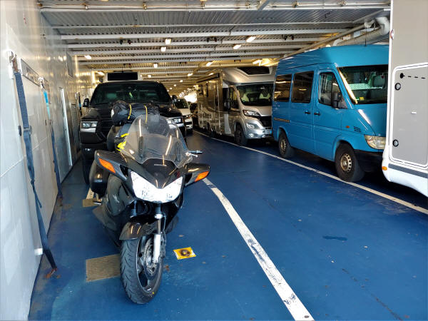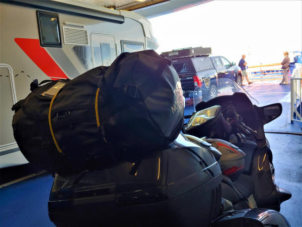 Afortunadamente las motos no suelen tener problemas aún yendo sin reservas, aunque el ferry iba hasta los topes de caravanas y similares...