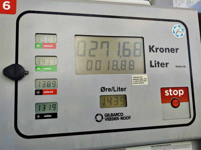 Y la primera en la frente, este llenado de deposito nos va a dar a entender donde nos habíamos metido, 2 € el litro de gasolina, el segundo país donde más cara estaba la gasolina después de Francia