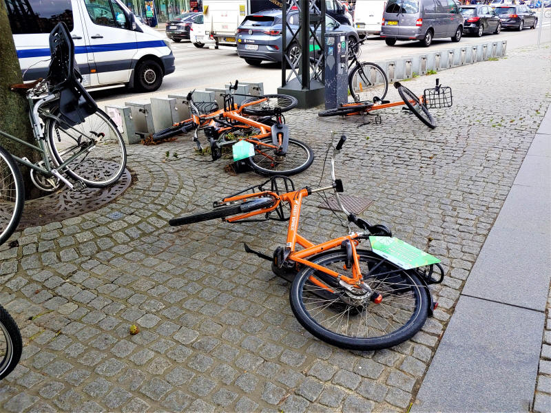 En un país donde todo es orden, un sitio para cada cosa y cada cosa en su sitio, estas imágenes llamaban la atención..., la borrasca desordenaba las aceras, las bicis, los patinetes...