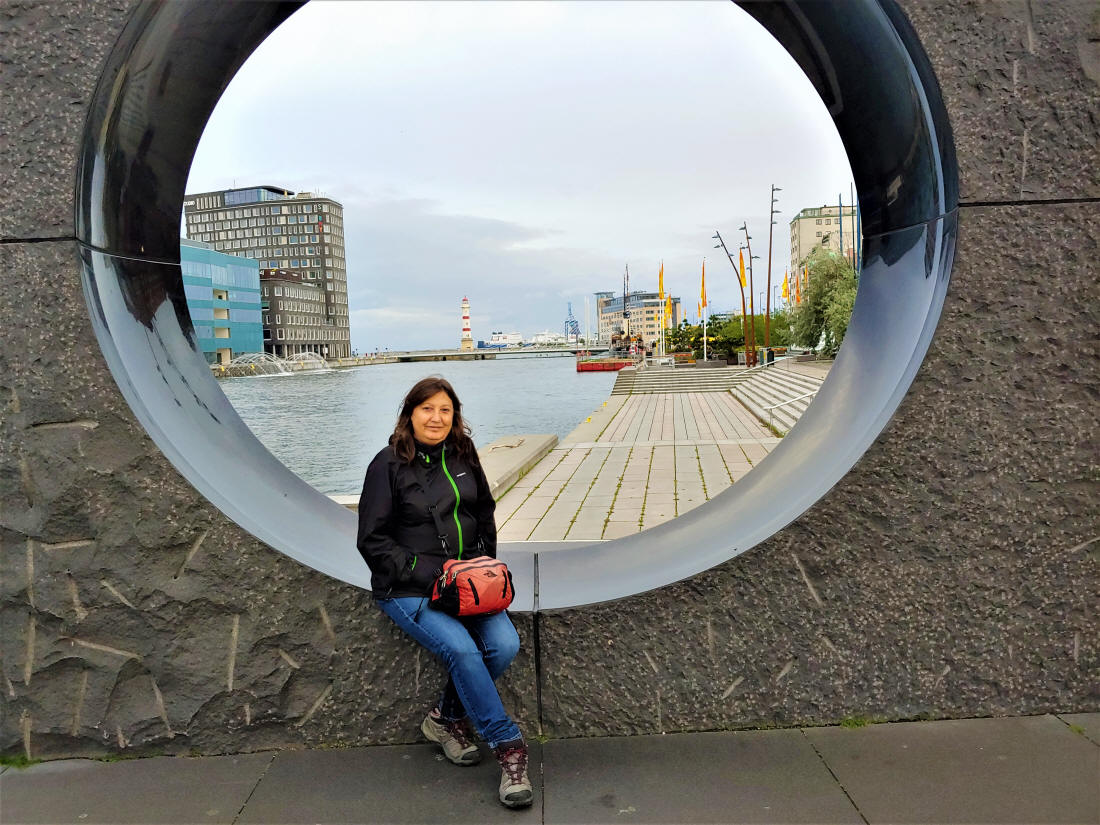 Y con esta foto de Marisa con el faro al fondo nos despedimos de Malmo...