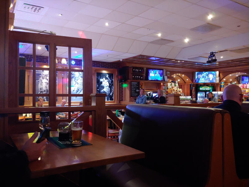 Ya atardecía con rapidez, así que después de visitar el centro de la ciudad sin demasiado interés, paseamos por un parque cercano al hotel..., y descubrimos en todo el medio este Pub de madera con un buen ambientazo interior, con mesas y bancos corridos, no hicimos fotos del interior por respeto, así que lo tendréis que imaginar o..., visitar...!!!