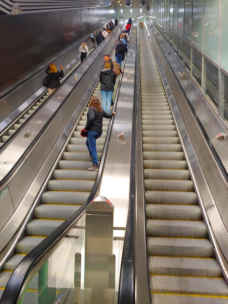 El día de hoy nos propusimos visitar otros barrios conocidos..., como he comentado anteriormente el tren de cercanías nos dejaba en la Estación Central, estás escaleras me sorprendieron, conozco las del metro de Madrid..., no hay comparación...