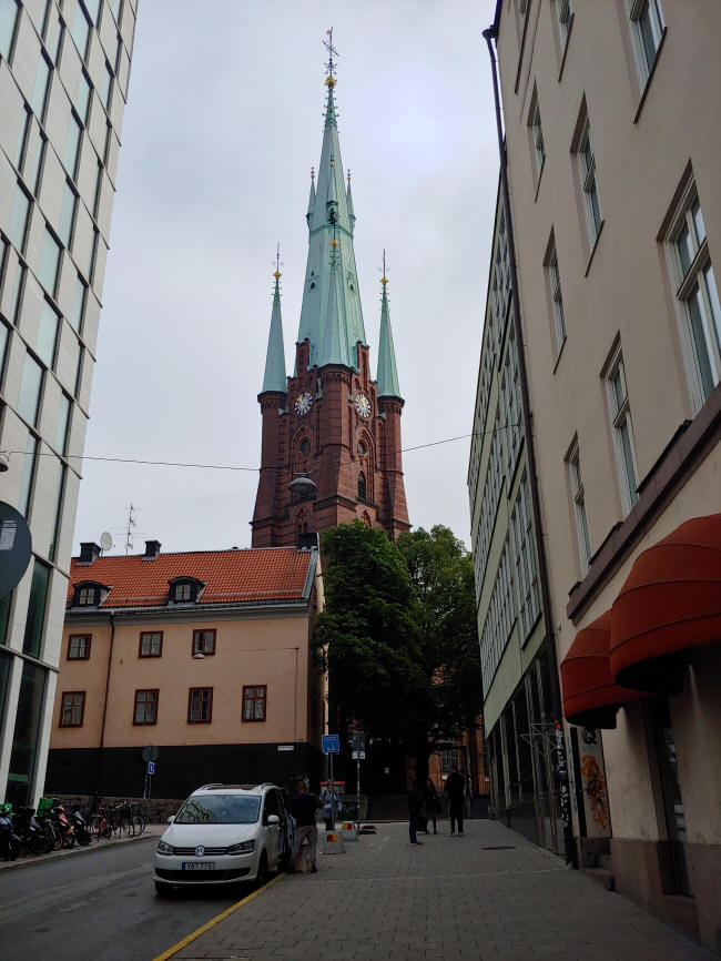 Vamos buscando el famoso barrio de Södermalm, y eso nos hace pasar por las inmediaciones de Storkyrkan (La Catedral de Estocolmo)