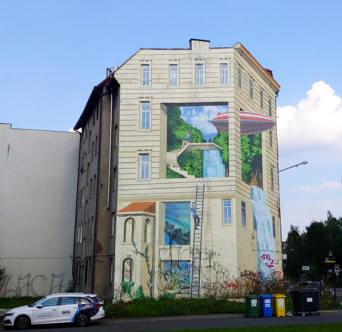Una de los lugares a visitar en la ciudad de Poznan además de la plaza en obras, es un mural pintado en "tres dimensiones", fuimos en su busca..., estuvo chulo.