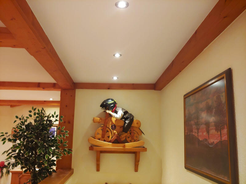 Antes de abandonar el hotel por la mañana no pude por menos evitar hacerle una foto al "motero" de la pared, el alojamiento tenia cierto aire ciclista y motorista...