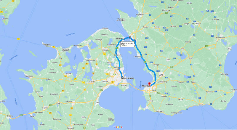 Llegamos a la conclusión que lo mejor sería subir hacia el norte, hasta Elsinor y allí coger un ferry de media hora y que nos llevara hasta Helsingborg ya en Suecia y de allí a Malmo donde haríamos noche..., lo que tuve claro una vez embarcamos es que no éramos los únicos que lo habíamos pensado