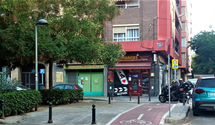 A estás dos fotografías también las separan 18 años, en la anterior la escalera solo está pintada, en esta ya la han construido, el nombre de la calle es el mismo...
