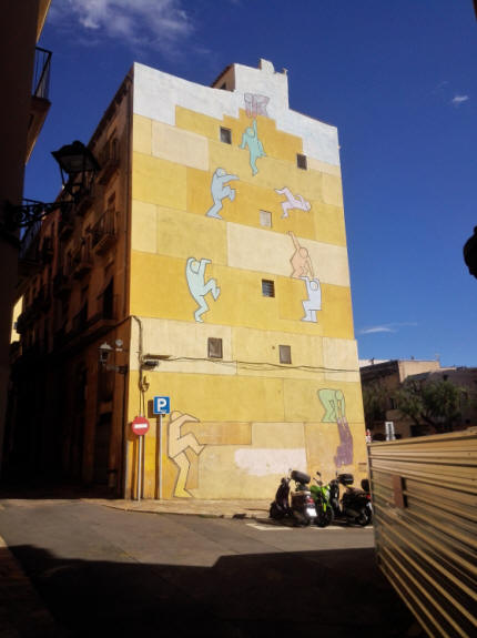 Comenzamos nuestra salida del casco histórico, ya se había hecho la hora del habitual avituallamiento, y mientras buscábamos la plaza del Ayuntamiento nos encontramos con este simpático a la par que artístico mural...