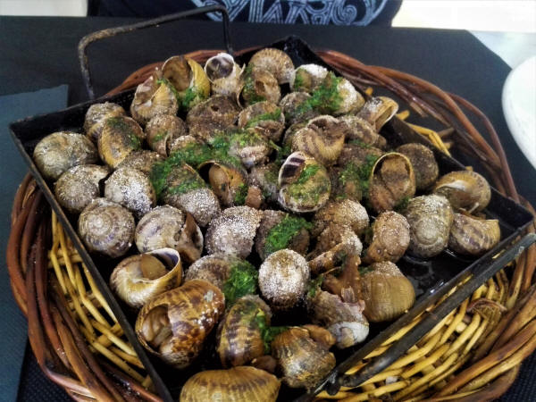 Encontramos un restaurante a nuestro gusto y donde Marisa se pudo dar el capricho de comerse unos apetitosos Cargols a la llauna...