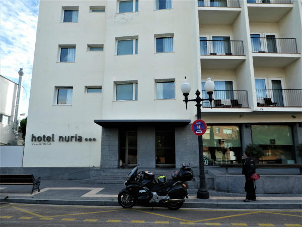El Hotel Nuria, que combina una buena relación calidad/precio no nos defraudó, además de poder aparcar la moto en parking privado por solo 5€ al día.