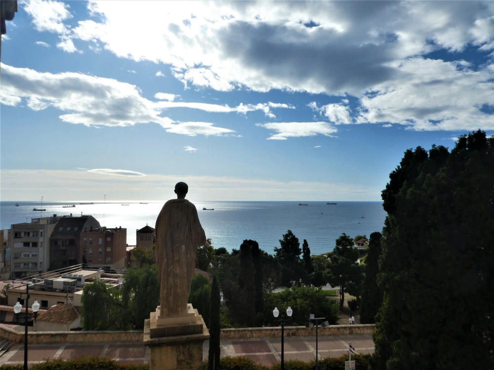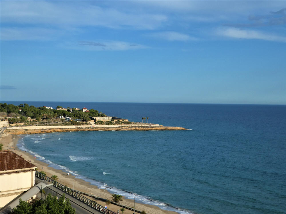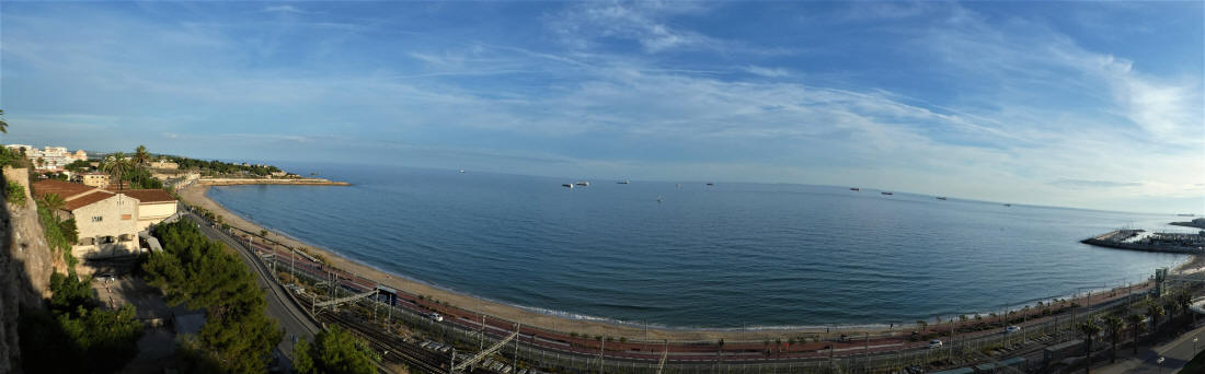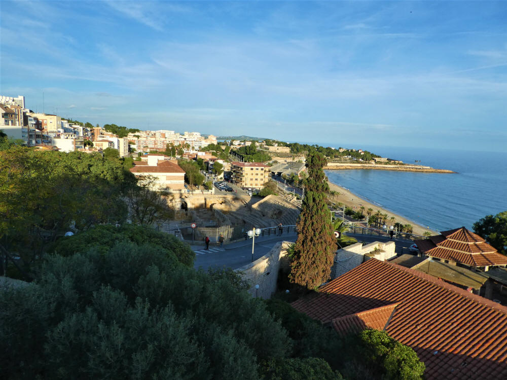 Desde "El Balcón" donde se aparecían al fondo a la derecha la Punta y la Platja del Miracle. Al centro las ruinas del Anfiteatro romano.