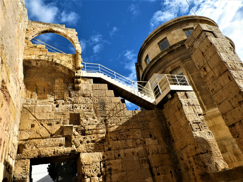 Una vez llegamos a la rotonda final de la Via Augusta, nos encontramos a la izquierda con "El Balcon" y el Anfiteatro romano..., y a la derecha con la Torre de les Monges s. XIII - XV