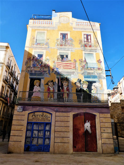 Continuamos nuestra visita por el cercano barrio de la judería, contrastando restos de antiguos Pórticos romanos como el de la Plaza del Forum, con modernos trampantojos...