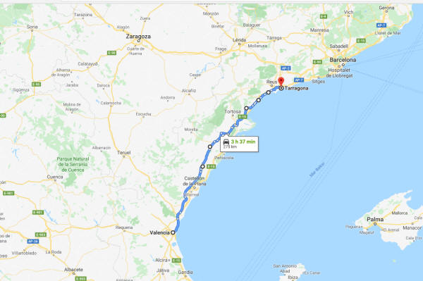 Poco más que contar, apenas nos separan 275 km. que realizamos por carreteras generales y secundarias muy a pesar de las insistentes indicaciones de entrar en la AP-7; el tiempo es soleado y la temperatura entorno a los 20º.