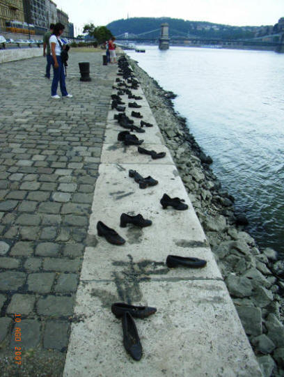 El monumento de los zapatos en el Paseo del Danubio es una alegoría a lo que quedó de los judíos asesinados y tirados a la corriente de agua por los fascistas.