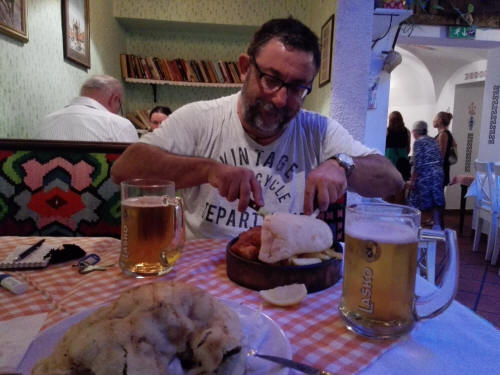 ¿Que queréis? a falta de poder fotografiar los saltos de la moto por los adoquines de L'viv y el dolor de muñecas que produce..., que tal unas cervecitas antes de visitar la ciudad, que nos las hemos ganado ¿no?