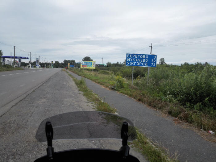 Ohhh la primera desilusión, no hay ningún cartel ni señal a la entrada que nos indique que hemos entrado en Ucrania..., nos tendremos que conformar con hacer una foto a la primera señal que vemos en cirílico...
