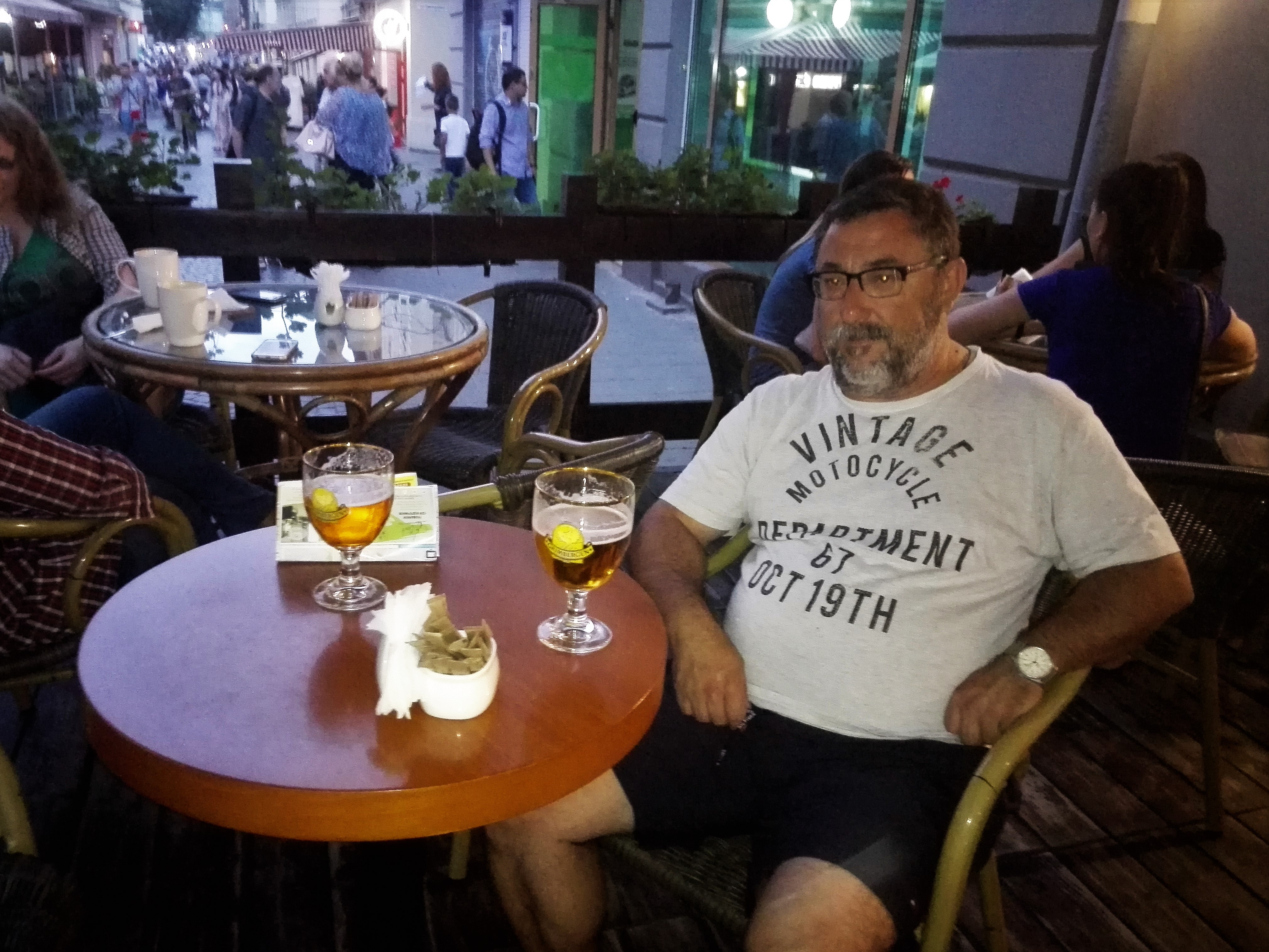 El calor sería la tónica general de este viaje y la cerveza también, y los inoportunos que están mirando el móvil y se levantan al hacer click, también...